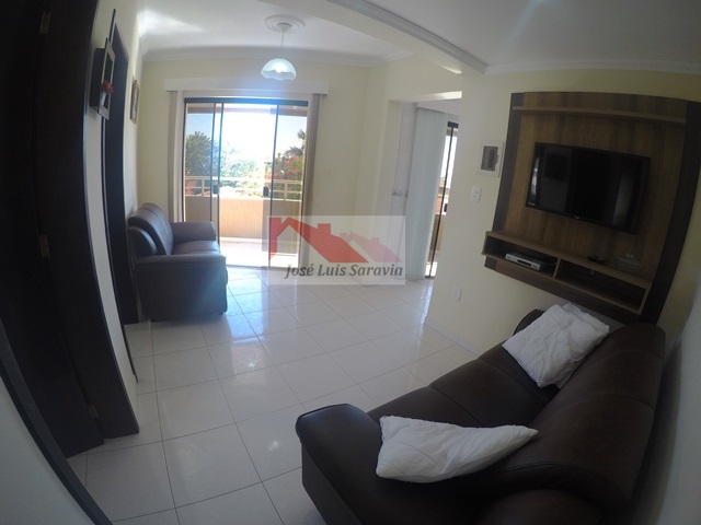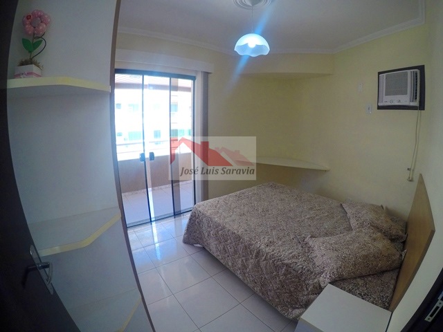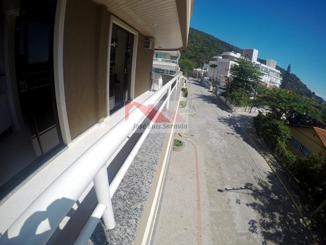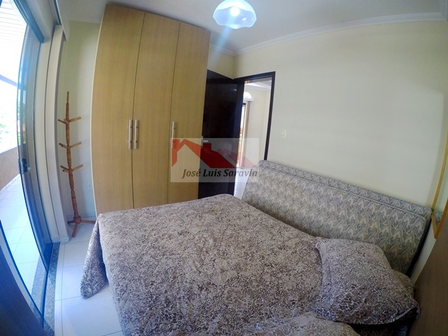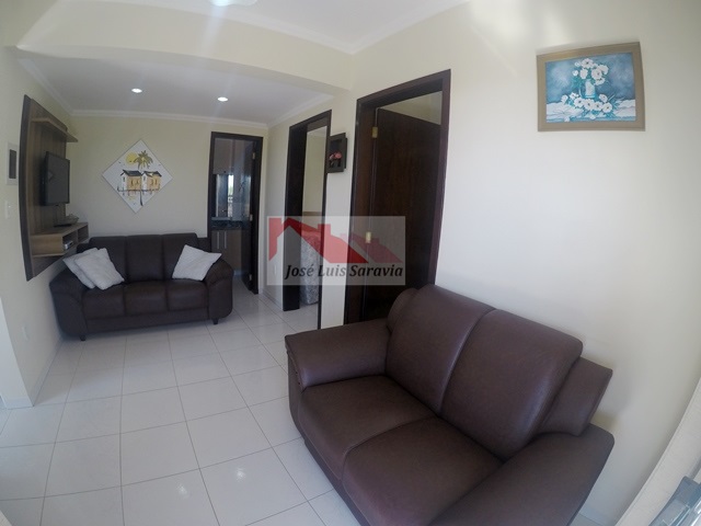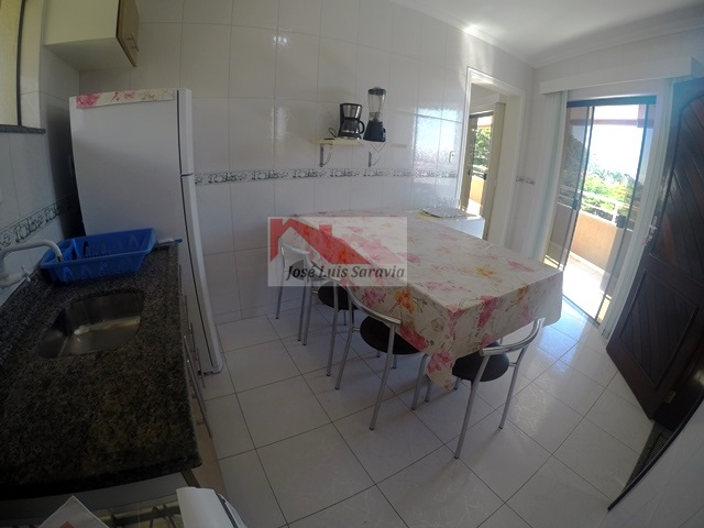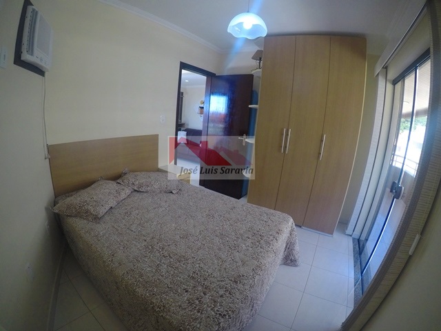 2 Quartos de casal com ar cond., sala, cozinha equipada, 1 banheiro, ampla sacada com churrasqueira, localizado a 60 m da praia, somente escadas, internet, maquina de lavar compartilhada, vaga PARA 1 CARRO na frente do predio, conforme as fotos do site.