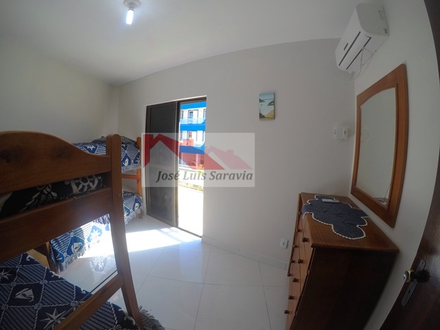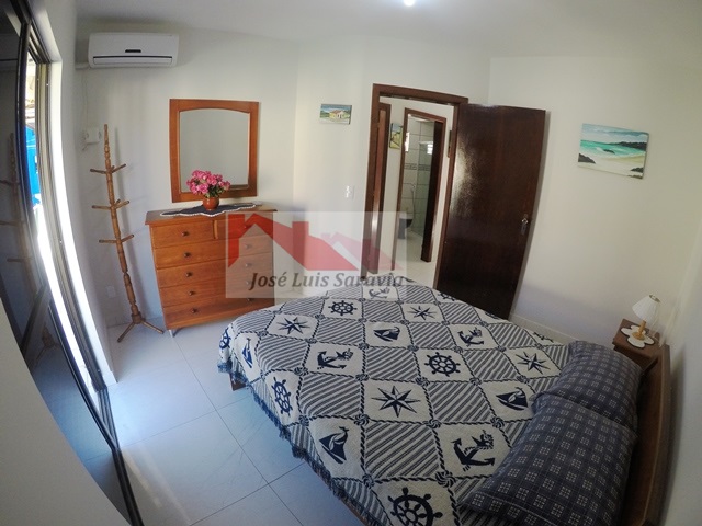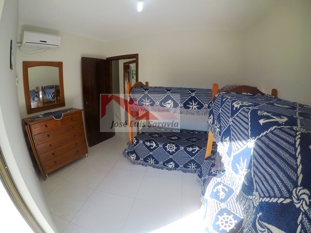 Apartamento duplex em condominio beira mar, sendo 3 quartos com ar condi., 1 suite de casal, 1 dormitorio de casal, 1 dormitorio com 2 beliches, 1 banheiro social, 1 lavabo, internet, maquina de lavar, estacionamento para 2 carros.