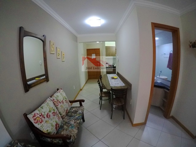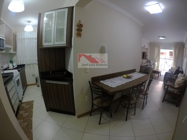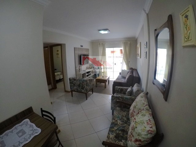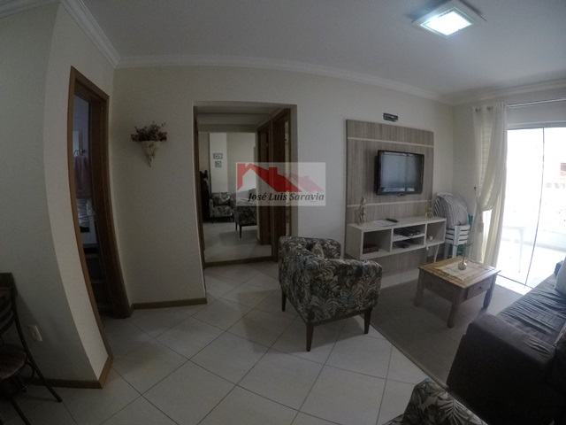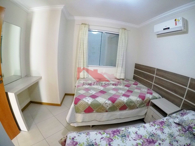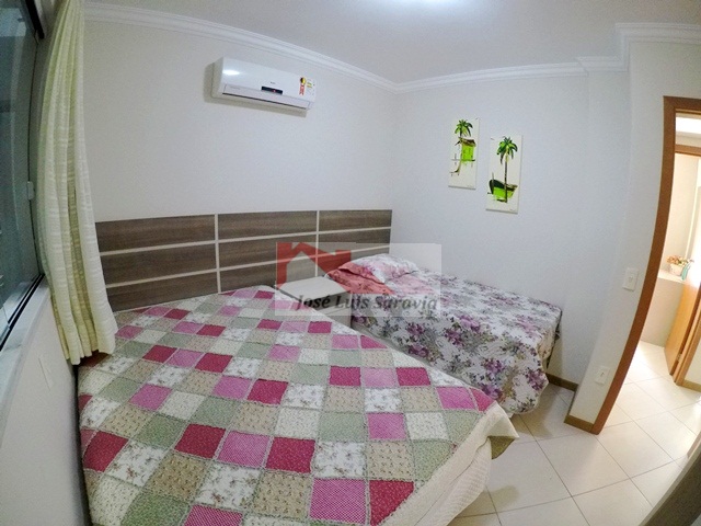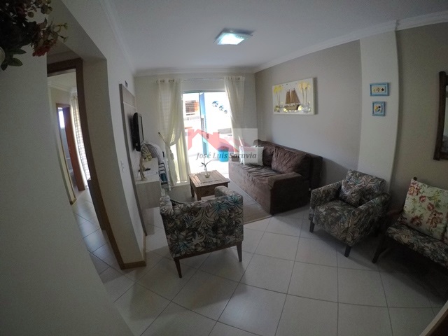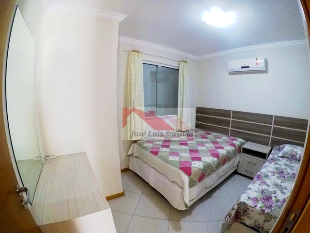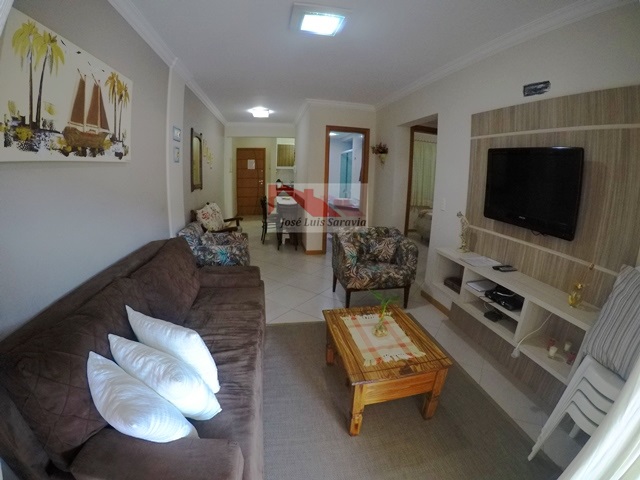 Apartamento a 400m da praia, sendo: 1 suite de casal com ar condicionado, 1 dormitorio de casal e 1 cama de solteiro com ar condicionado, 1 banheiro social, sala de estar com sofa cama e ar condicionado, sacada com churrasqueira, maquina de lavar, estacionamento para 1 carro.