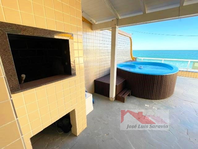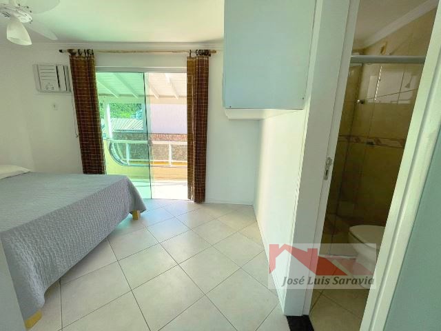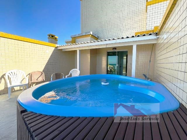 Triplex: 4 suites c/ ar condicionado, sendo 2 camas de casal, 4 camas de solteiro, sala com TV, cozinha completa, maquina de lavar, 1 lavabo, piscina do condominio compartilhada. Piscina tipo ofuro temperatura ambiente e churrasqueira privativa, 1 vaga de garagem.