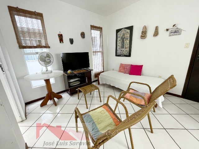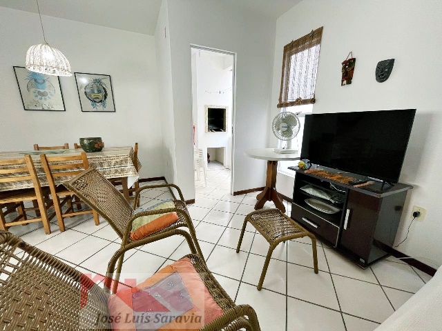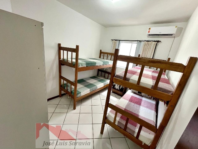 Apartamento no centro de Bombas, com 2 quartos com ar condicionado, 2 banheiros, sacada com churrasqueira, quarto de casal de frente para rua, com vista lateral do mar, maquina de lavar, edificio sem elevador, apartamento no segundo piso.