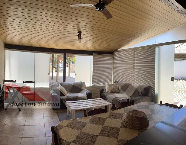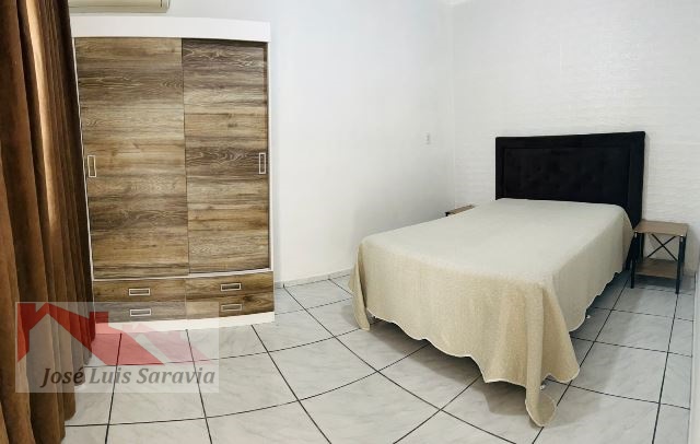 Casa com amplo patio em Mariscal, 1 quarto conjugado com 2 dormitorios separados de um lado: cama de casal e cama de solteiro e ventilador de teto, do outro lado: beliche e 2 camas de solteiro e ar condicionado, 1 quarto com uma cama de casal e ar condicionado, internet, maquina de lavar, 2 banheiros, vaga de garagem coberta para 2 carros.