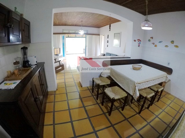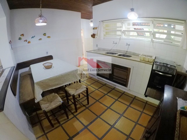Casa na quadra do mar, com patio grande, sendo: 4 quartos com ar condicionado, 3 banheiros, cozinha completa, internet wifi, area gourmet com mesa e banco de madeira, estacionamento para 3 carros.