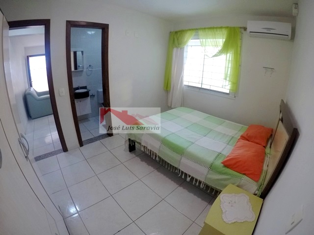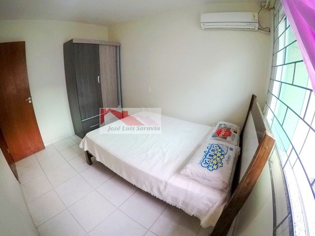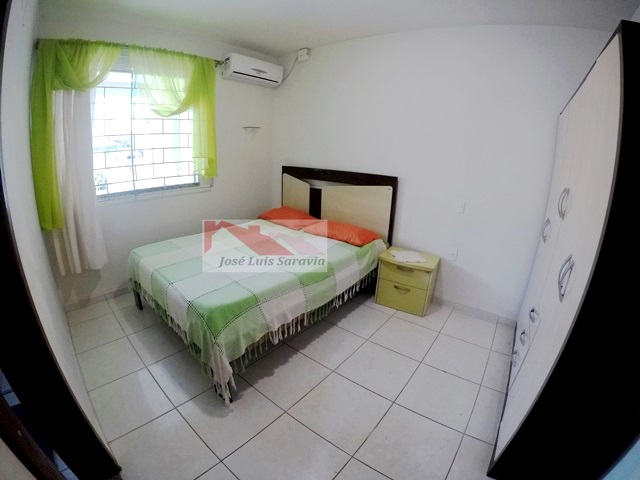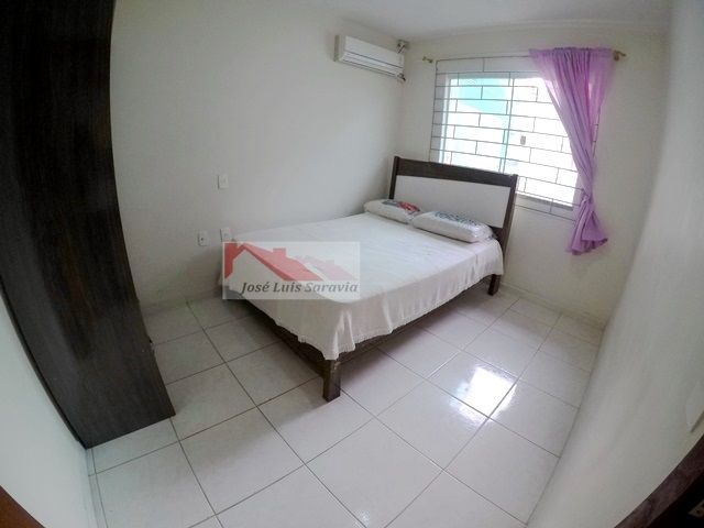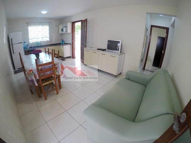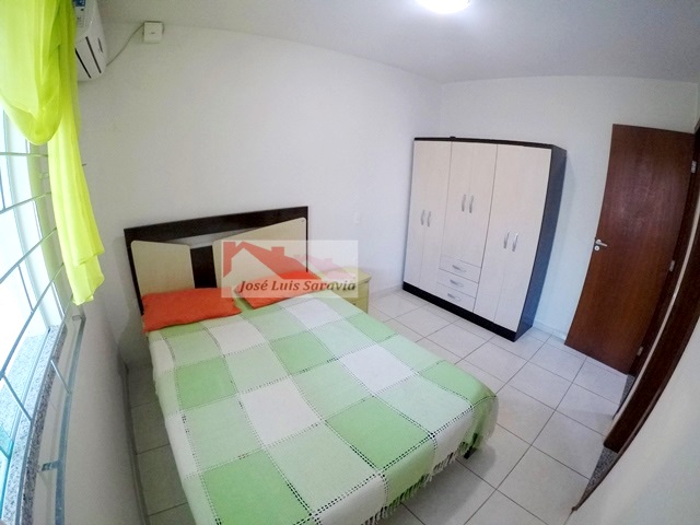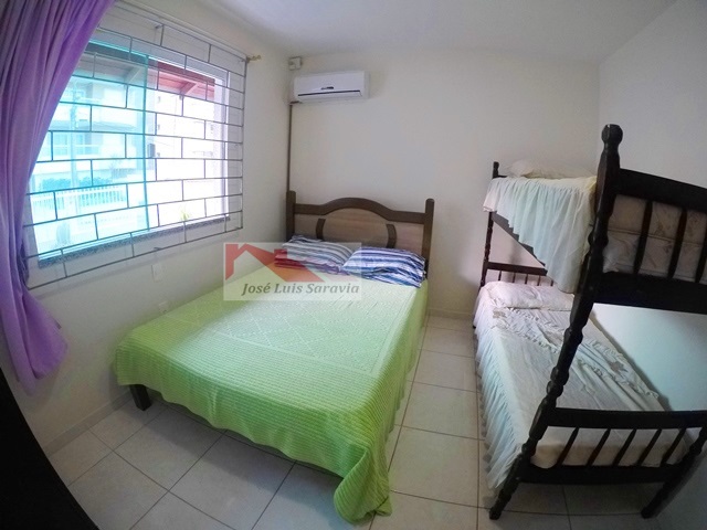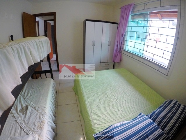 Casa pertinho da praia com amplo patio, 3 quartos com ar condicionado, sendo 1 suite, 3 camas de casal e 1 beliche,1 banheiro social, internet, churrasqueira, maquina de lavar, casa toda com grades.