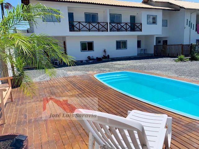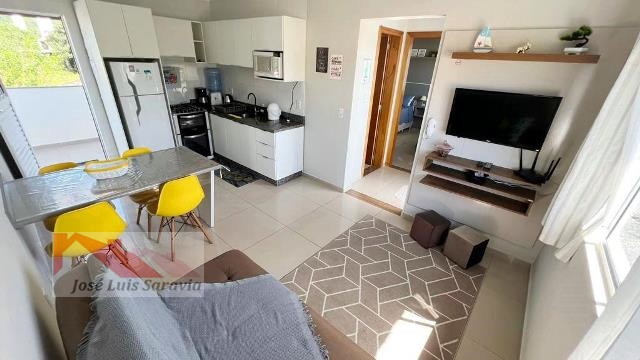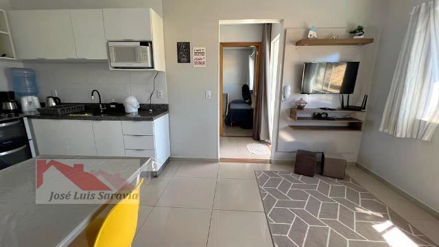 Apartamento com piscina, sendo: 1 dormitorio de casal e cama de solteiro e ar condicionado Split, 1 banheiro social com secador de cabelo, sala com TV Smart com mais de 300 canais liberados, ventilador e sofa cama, cozinha completa, maquina de lavar, churrasqueira portatil, estacionamento fechado. Cortesia: 2 cadeiras de praia e guarda sol.