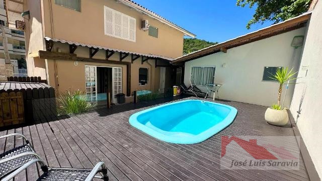 Casa possui 4 suites com ar condicionado, sendo 1 suite no terreo ao lado da area gourmet, e as outras 3 suites no segundo andar, patio e piscina privativa, maquina de lavar, casa a 250 metros da praia de Bombas.