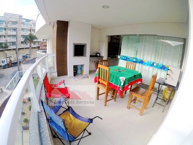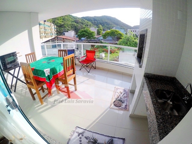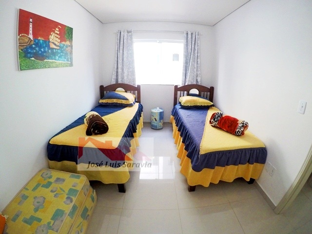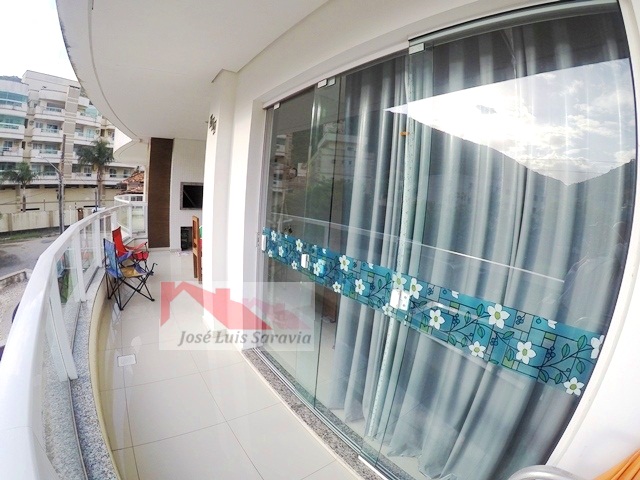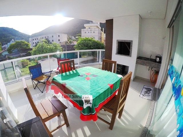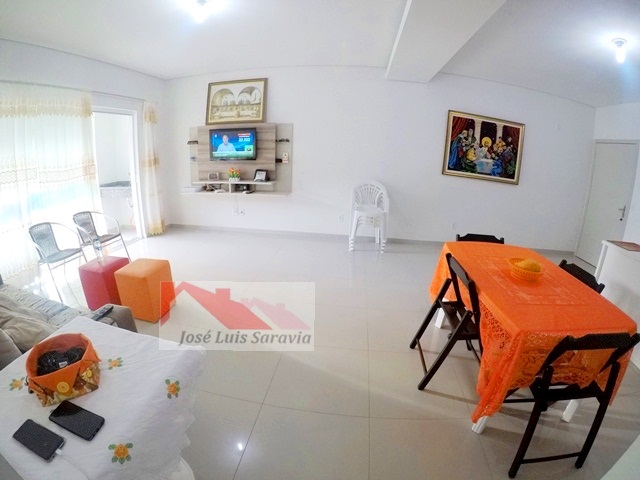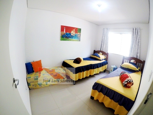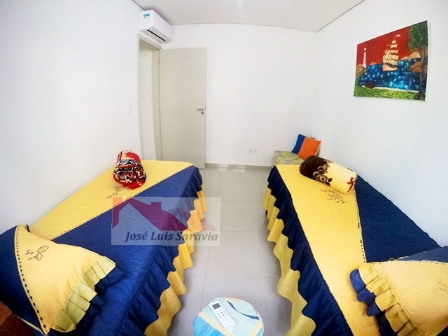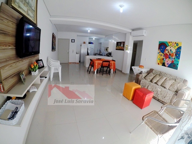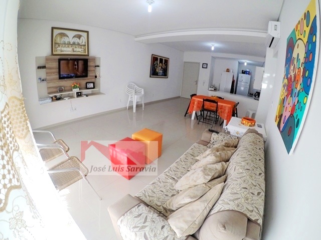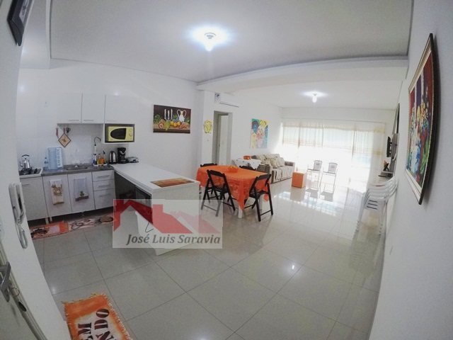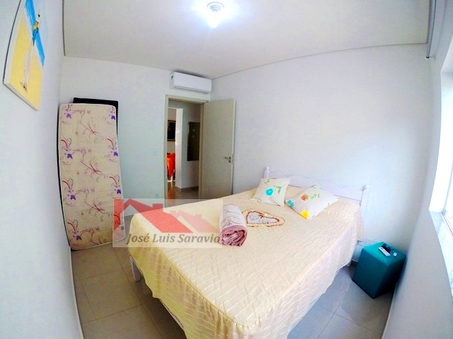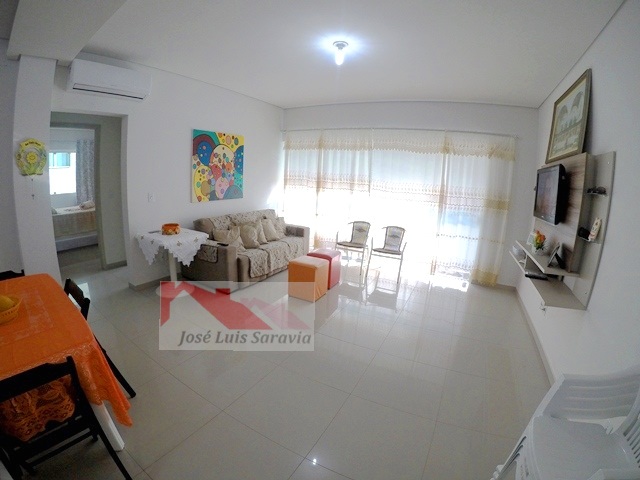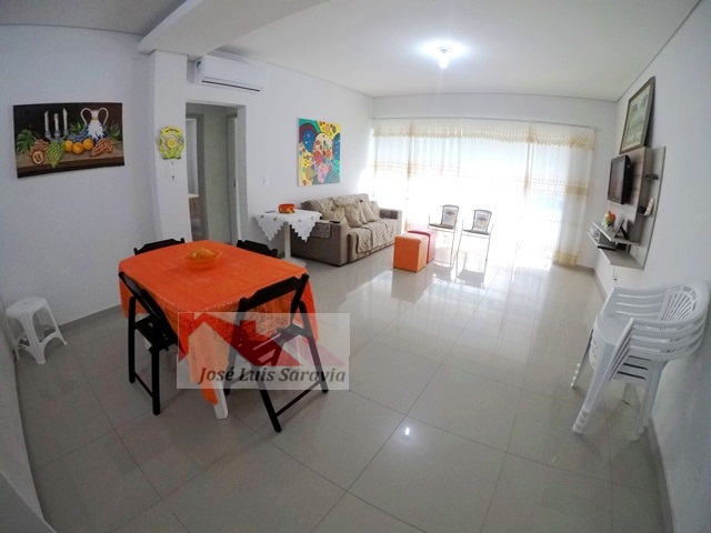 Amplo apartamento no primeiro piso, 3 quartos com ar condicionado, sendo 1 suíte de casal, 1 quarto de casal e outro quarto com 2 camas de solteiro, 2 banheiros, ampla sala com ar condicionado e sofa retratil, maquina de lavar, ampla sacada com churrasqueira, 1 vaga de garagem.