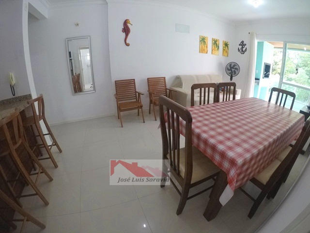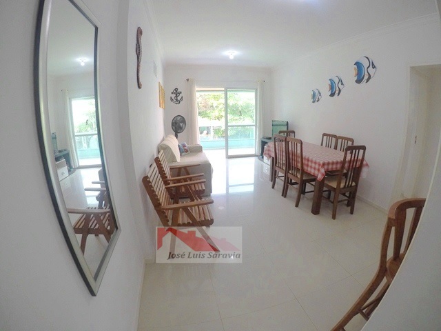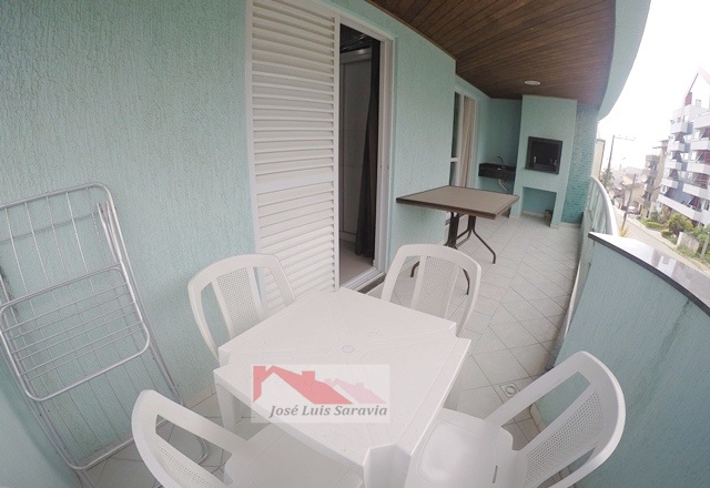 Apartamento amplo, proximo ao supermercado Schimidt, 3 quartos com ar condicionado sendo 1 suite, 1 banheiro social, internet, maquina de lavar, ampla sacada com churrasqueira e vista para o mar lateral, 1 vaga de garagem.