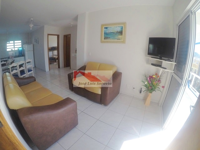 Apartamento com 2 quartos com ar condicionado, 2 banheiros, sala e cozinha conjugada, internet wifi, sacada com churrasqueira, de frente pra rua, edificio sem elevador, somente escadas, 1 vaga de garagem, 30 metros da praia.