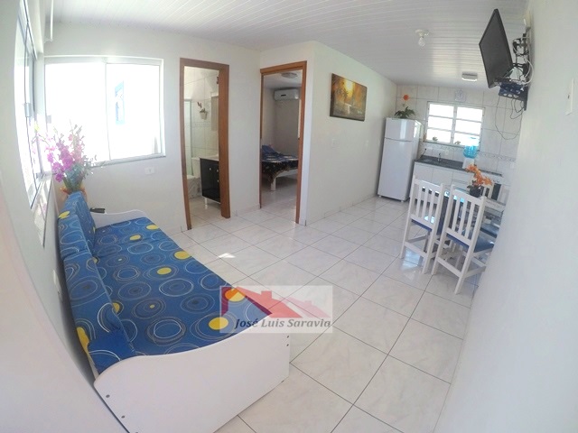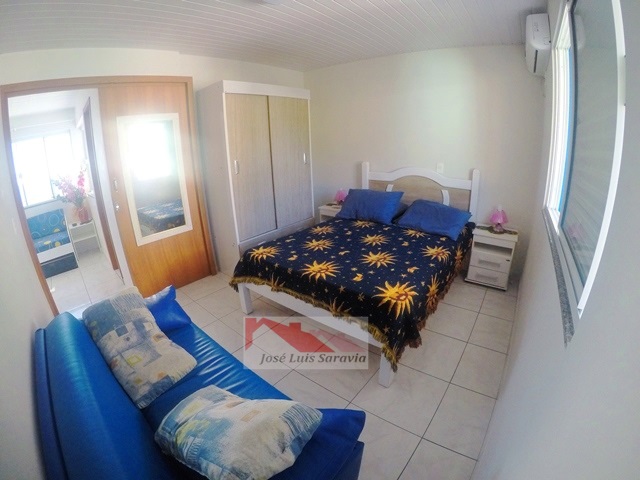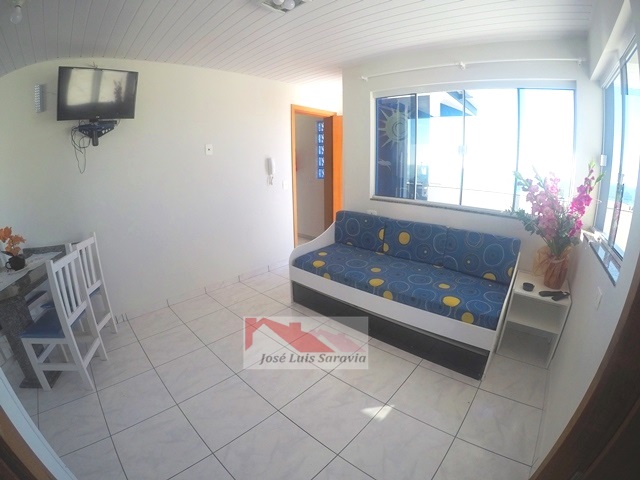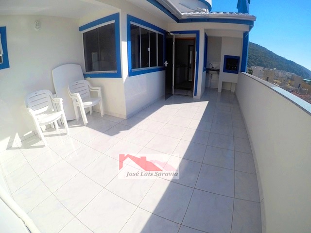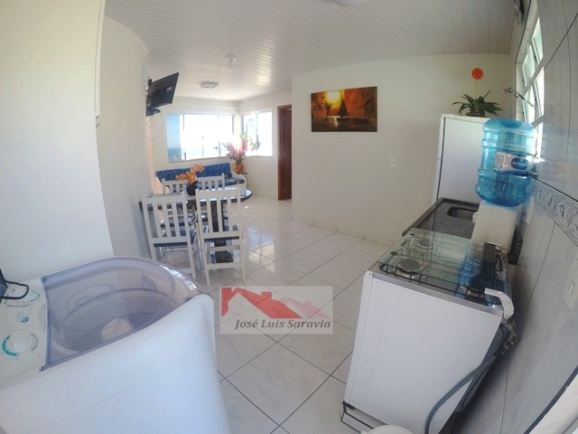 Cobertura com uma bela vista panoramica ao mar, 1 dormitorio de casal com ar condic.e sofa cama, sala com sofa cama e TV, internet, cozinha completa, maquina de lavar, 1 vaga de garagem, 30 metros da praia. OBS:Terceiro piso,com escadas.
