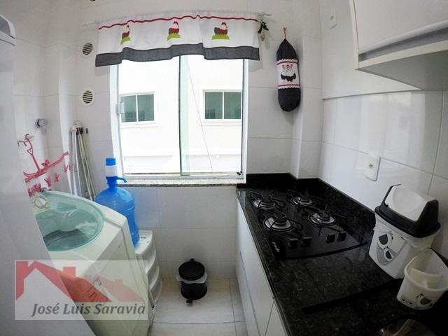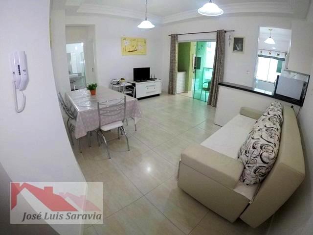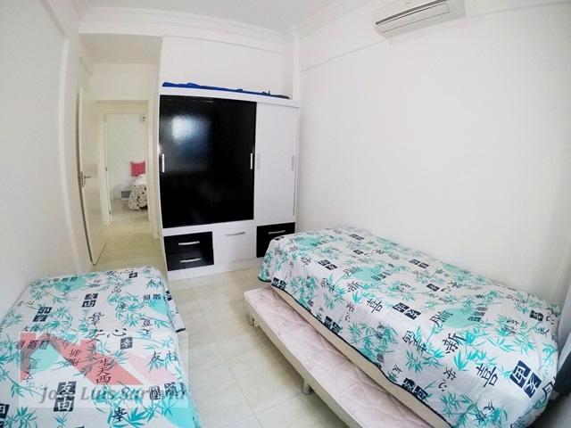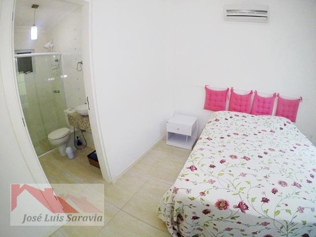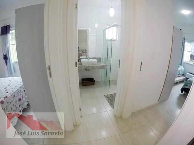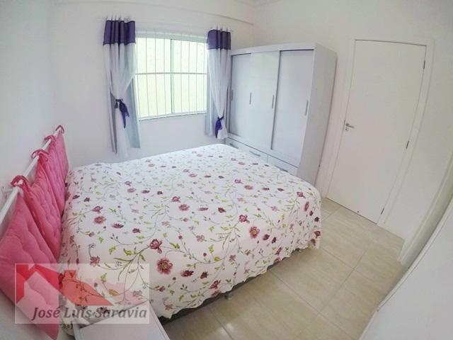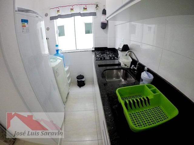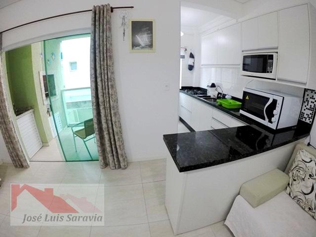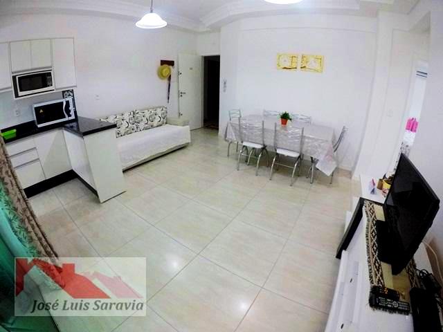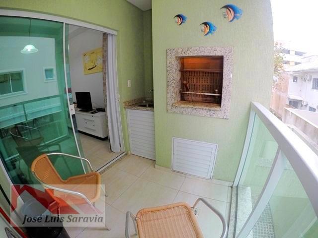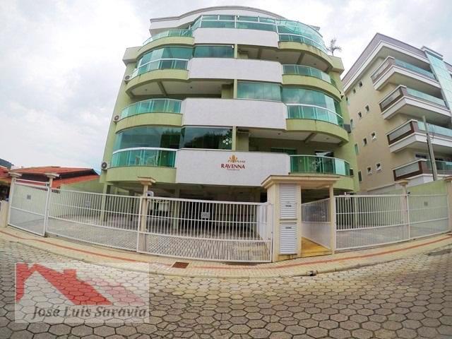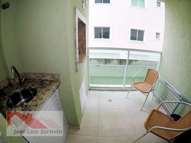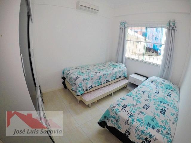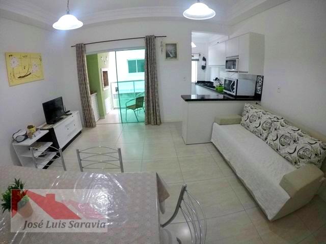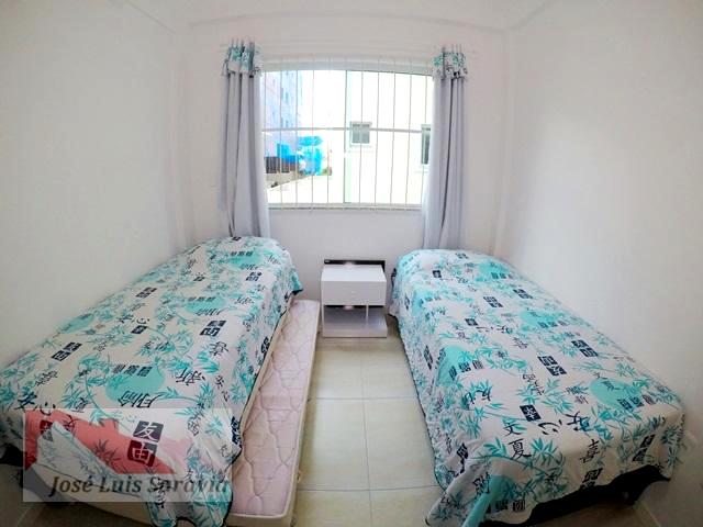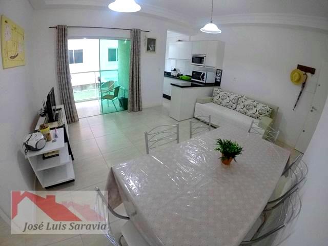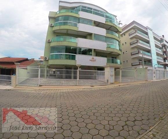 Apartamento em Bombas com 2 quartos com ar condicionado, sendo 1 suite, 1 banheiro social, maquina de lavar, sacada com churrasqueira, 400 metros da praia de Bombas, estacionamento descoberto para 1 carro pequeno.