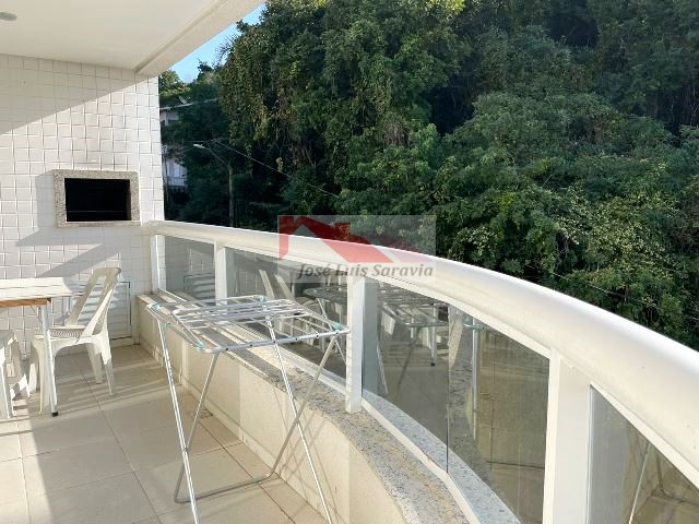 Amplo apartamento com vista lateral do mar, 3 quartos de casal com ar condicionado, sendo 1 suite, 2 banheiros, internet, 2 sacadas grandes, quartos com acesso a sacada, churrasqueira, maquina de lavar, e 1 vaga de garagem.