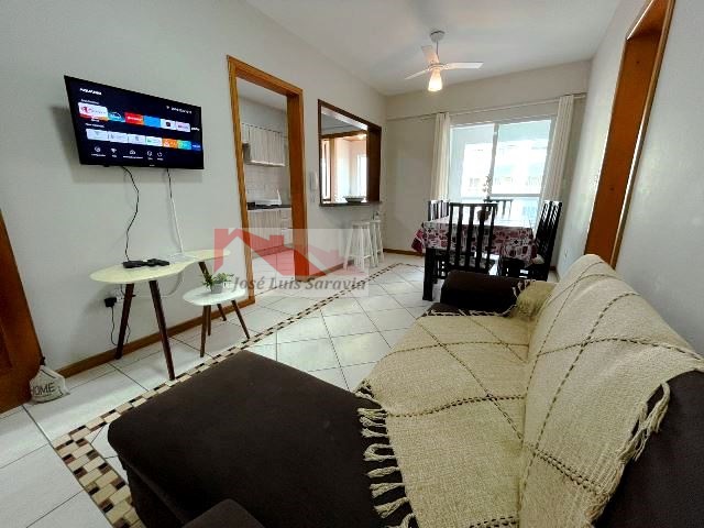 Apartamento com 2 quartos com ar condicionado sendo 1 suite, 1 banheiro social, internet, maquina de lavar, sacada com churrasqueira, estacionamento para 1 carro, predio na avenida, 50mts da praia.