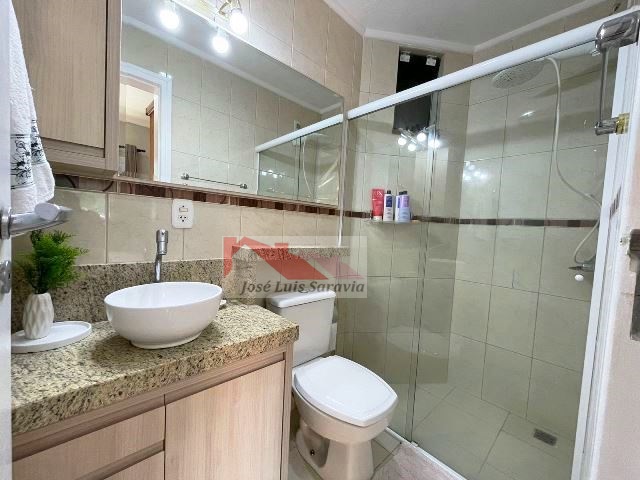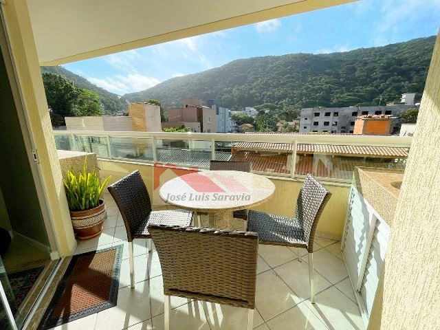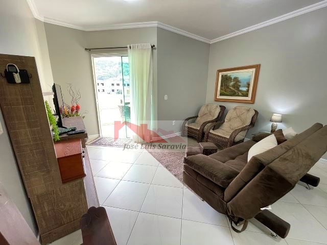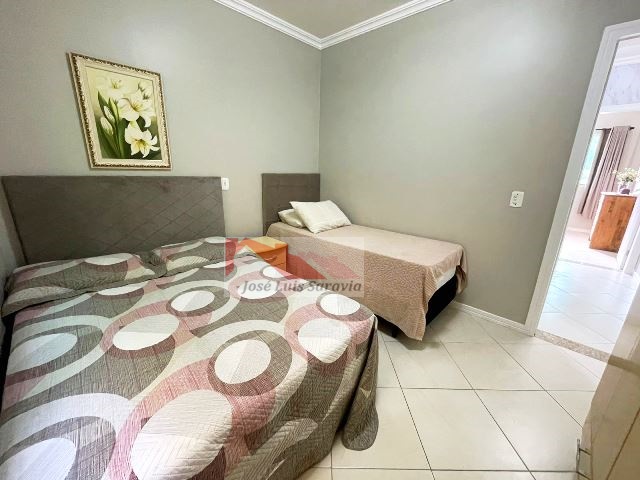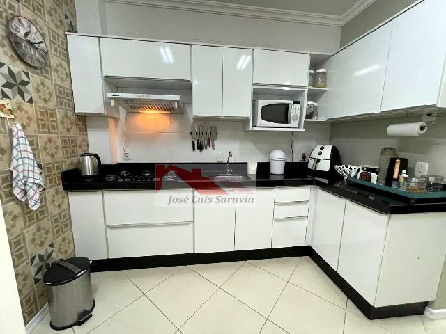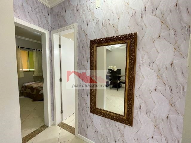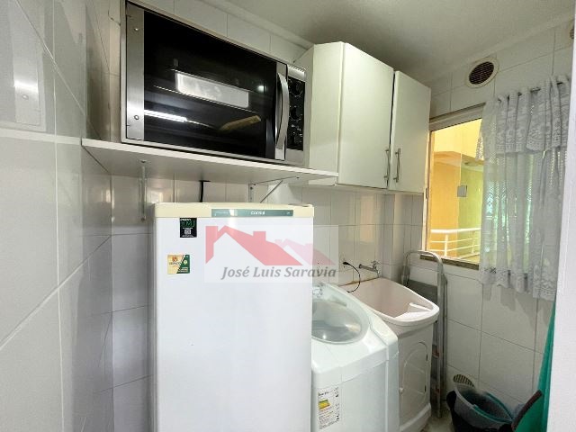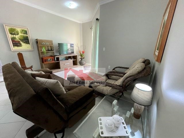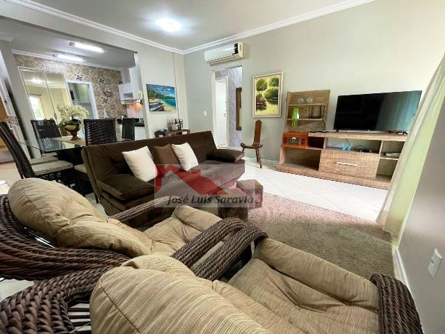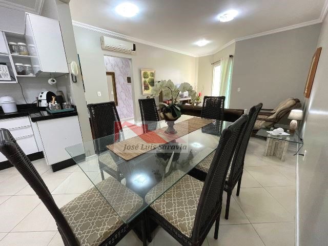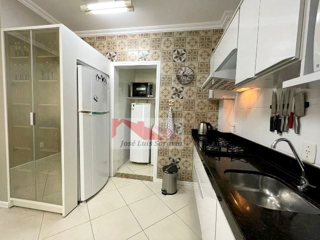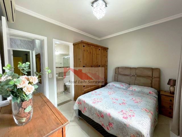 Apartamento de 2 quartos com ar condicionado, sendo 1 suite, cozinha completa, freezer, maquina de lavar, sala com ar condicionado, sacada com churrasqueira mesa e cadeiras, garagem para dois carros de passeio.