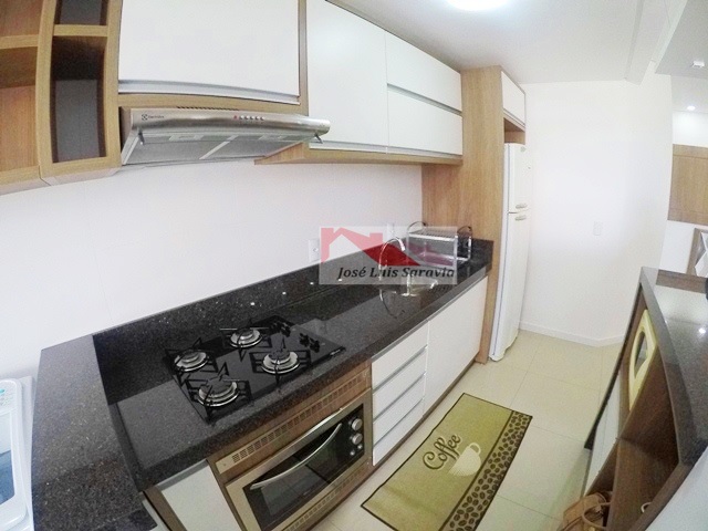 Apartamento super aconchegante, no centro de Bombas, com 2 quartos de casal com ar condicionado sendo 1 suite, 1 banheiro social, cozinha completa, maquina de lavar, ampla sacada com churrasqueira, internet, 2 vagas de garagem.