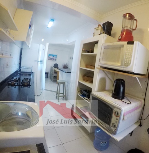 Apartamento com vista para o mar, de 3 dormitorios com ar condicionado sendo 1 suite, 1 banheiro social, 2 sacadas com vista para o mar, maquina de lavar, internet, estacionamento para 1 carro.